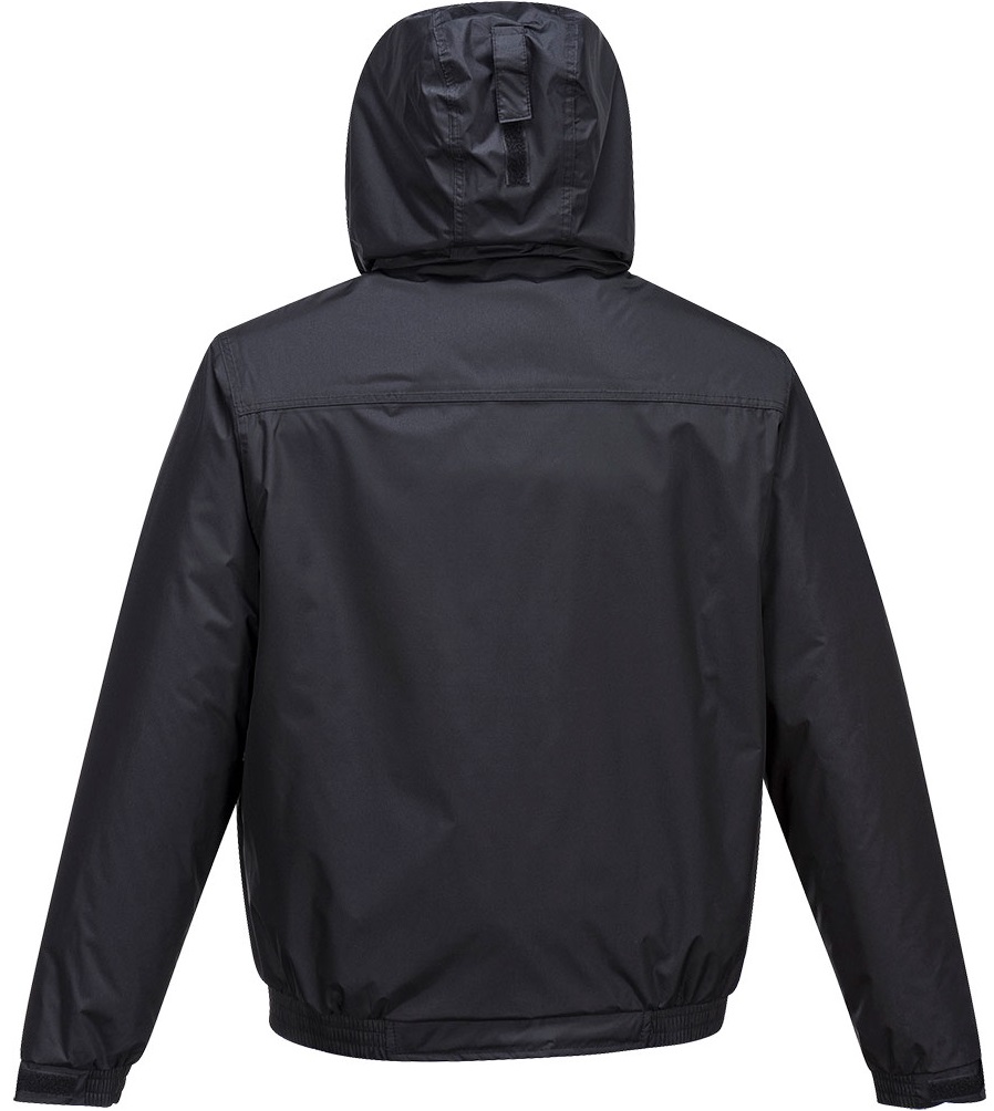 Product information This high-quality bomber jacket offers excellent protection against moisture and windy conditions. It is completely waterprooferdi, windproof and breathable. Fleece lining and lined sleeves provide optimum warmth and comfort for the wearer. The jacket has a removable hood that can be rolled into the collar, as well as zipped pockets and Velcro fastener.Rainwear The following rainwear collections offer an excellent selection of designs and colours for many users. The best quality fabrics and high-tech construction techniques have been used to guarantee the highest level of weather protection. Tested to withstand the hardnesses of daily wear. Each garment is made with care to ensure satisfaction every time it is worn.Functions Standards: EN 343 Class 3:3 Watererdiand breathable with welded seams prevents water penetration Fully lined and padded to stop heat from outside and keep heat inside Fleece lining for extra warmth and comfort 4 pockets for sufficient storage sp