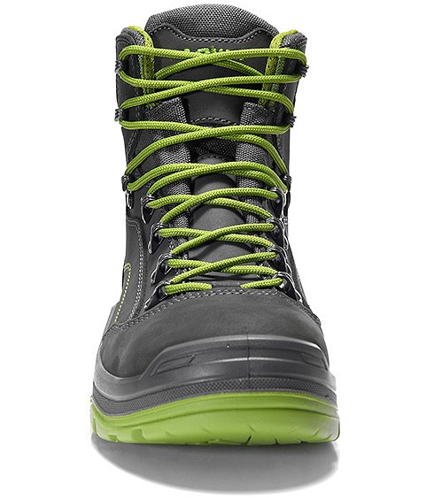 Ob im Galabau oder auf der Baustelle – mit dem Sicherheitsstiefel RENEGADE Work GTX green Mid S3 aus der LOWA Work Collection hinterlässt der Träger überall Eindruck. Der Stiefel mit auffälligen grünen Highlights überzeugt nicht nur durch seine moderne und sportliche Optik, sondern bringt auch alles mit, was ein Sicherheitsstiefel für anspruchsvolle Außenaktivitäten mitbringen muss. Robustes Obermaterial aus hydrophobiertem Nubukleder und Textilmaterial, das den Herausforderungen bei Wind und Wetter standhält sowie ein Innenfutter aus GORE-TEX Membran, die für ein ausgeglichenes Klima im Schuh sorgt. Abgerundet wird das Profil des Sicherheitsprofis mit der frischgrünen GUMMI/PU Laufsohle von VIBRAM®, die SRC zertifiziert ist und den verschiedenen Ansprüchen von Outdoor-Arbeitsplätzen hervorragend Rechnung trägt. Die eingesetzte Stahlkappe und die Stahlzwischensohle sorgen dafür, dass Gefahren von oben und unten dem Fuß nichts anhaben können. Erhältlich in den Größen 39 bis 47.