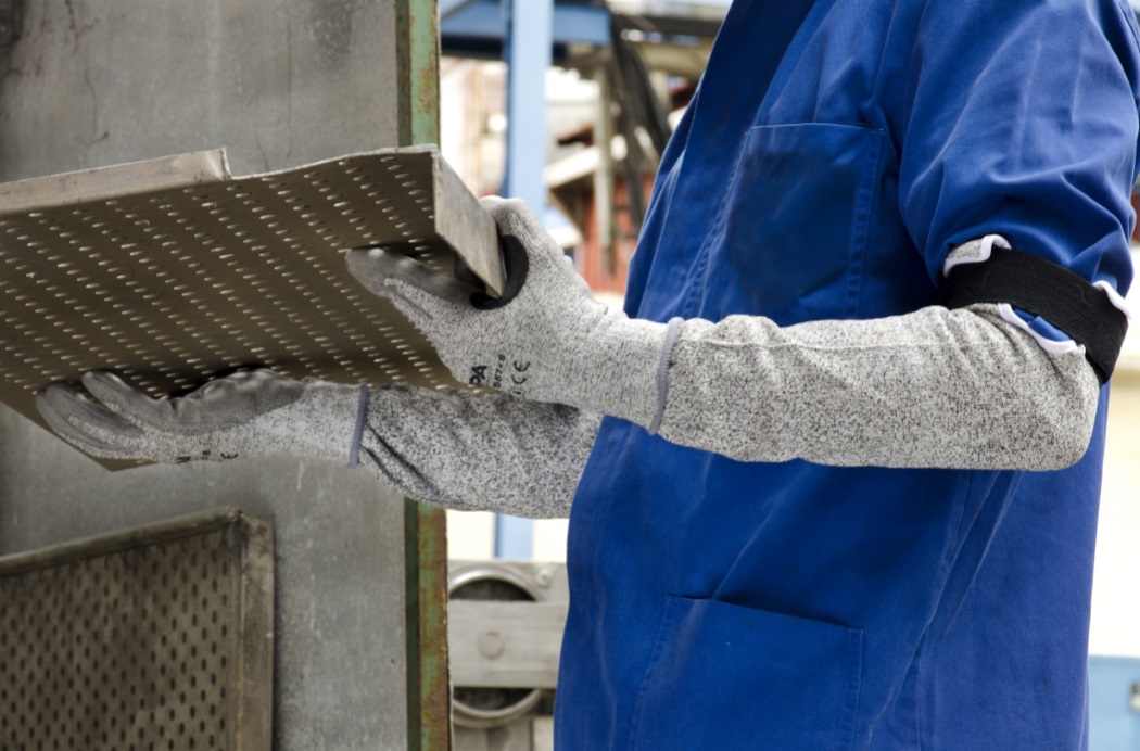 Daumenloch aus Polyamid-Feinstrick für optimalen Halt für mehr Sicherheit, für besseren Komfort und für gute Beweglichkeit der Hand. Klettband zur Weitenregulierung am Oberarm. Anwendung: Mechanische Industrie, Automobilindustrie: Mechanische Wartungsarbeiten, Montage feiner Bleche, Fahrzeugmontage, Umgang mit Metallteilen.