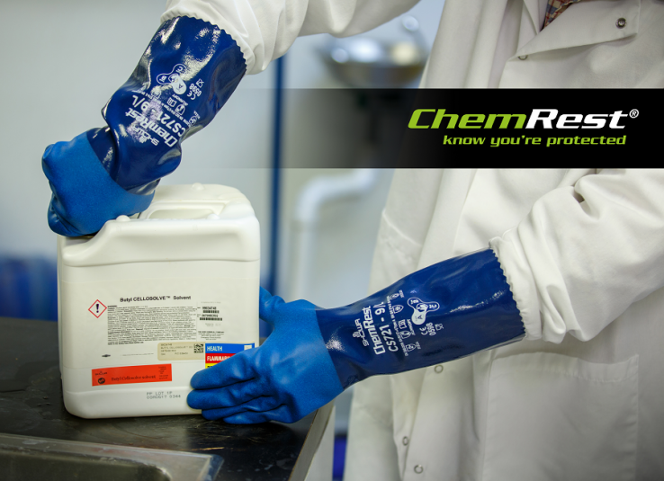 Die chemikalienbeständigen Handschuhe SHOWA CS721 schützen den Träger vor schädlichen Substanzen. Ein länglicher Unterarm bietet zusätzlichen Schutz. Eine rauhe Nitril-Handflächenbeschichtung bietet verbesserten Halt, während der pulverisierte Liner den Schweiß ableitet, um ein Verrutschen und Unbehagen zu vermeiden. Der langlebige CS721 hält außerdem Öl und Staub vom Handschuh fern und sorgt für optimale taktile Präzision.