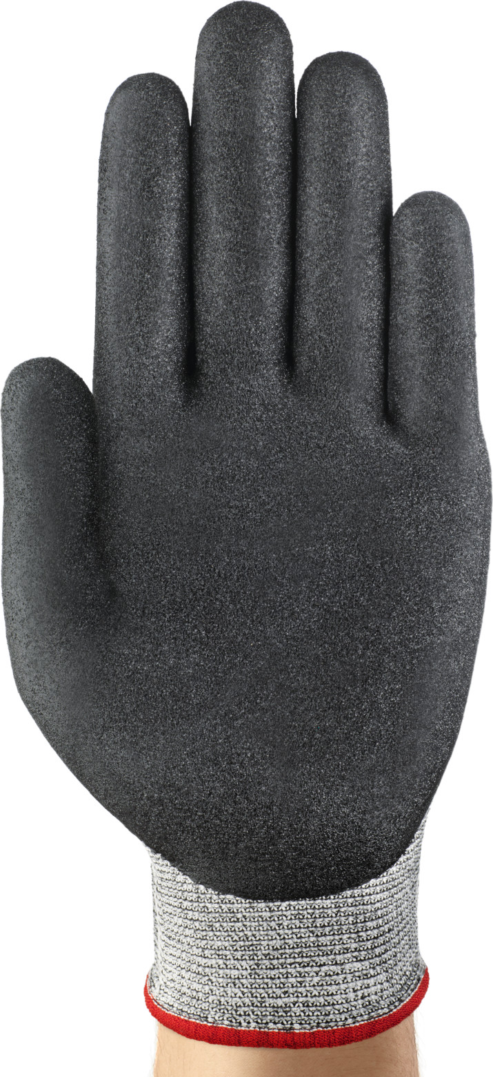 Der HyFlex 11-927 ist das erste Produkt der HyFlex®-Reihe, das einen erhöhten Schnittschutz, Ölabweisung und ein Ölgriffprofil in einem einzigen flexiblen Handschuh vereint. Ideal für die Handhabung und Montage von scharfkantigen, mit Öl oder Schmiermitteln behandelten Komponenten. Das auf der Patented Ansell Grip™ Technology basierende Griffprofil leitet Öl und Feuchtigkeit durch mikroskopisch kleine Kanäle von der Oberfläche von Komponenten und Werkzeugen ab und gewährleistet somit für erhöhte Sicherheit und Effizienz einen in der Industrie führenden Nass- und Ölgriff. Die Konstruktion kombiniert eine 3/4-Nitrilbeschichtung mit einem integrierten Griffprofil. Gewährleistet wird dadurch eine Abriebfestigkeit der EN-Stufe 4 und eine Schnittfestigkeit der EN-Stufe 3. Die 3/4-Beschichtung bietet einen zusätzlichen Schutz vor Ölbelastung und Schürfwunden an den Handknöcheln. Neu konzipierte Handschuhformen bilden die Basis für eine überragende Passform des Handschuhs. In Verbindung mit hochflexiblem Polymer und einer umfassenden Größenauswahl bietet dieser Handschuh somit bei Arbeiten mit mittleren Belastungen eine größere Bewegungsfreiheit. Die Grau- und Schwarzfärbung verbirgt Verunreinigungen des Handschuhs in ölbelasteten, verschmierten und verschmutzten Einsatzbereichen.