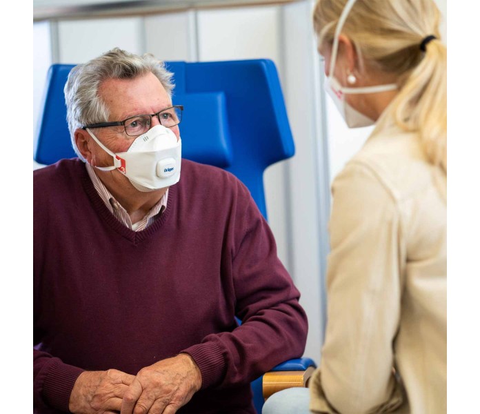 Die Dräger X-plore® 1930 V FFP3 NR D ist eine partikelfiltrierende Einweg-Halbmaske, die Schutz vor Feinstäuben sowie festen und flüssigen Partikeln bietet. Die Maske ist in zwei Größen erhältlich und passt somit für nahezu jede Gesichtsgröße. Zudem ist sie auch für Brillenträger geeignet, sodass auch Personen mit Sehschwäche nicht auf einen verlässlichen Schutz ihrer Atemwege verzichten müssen.